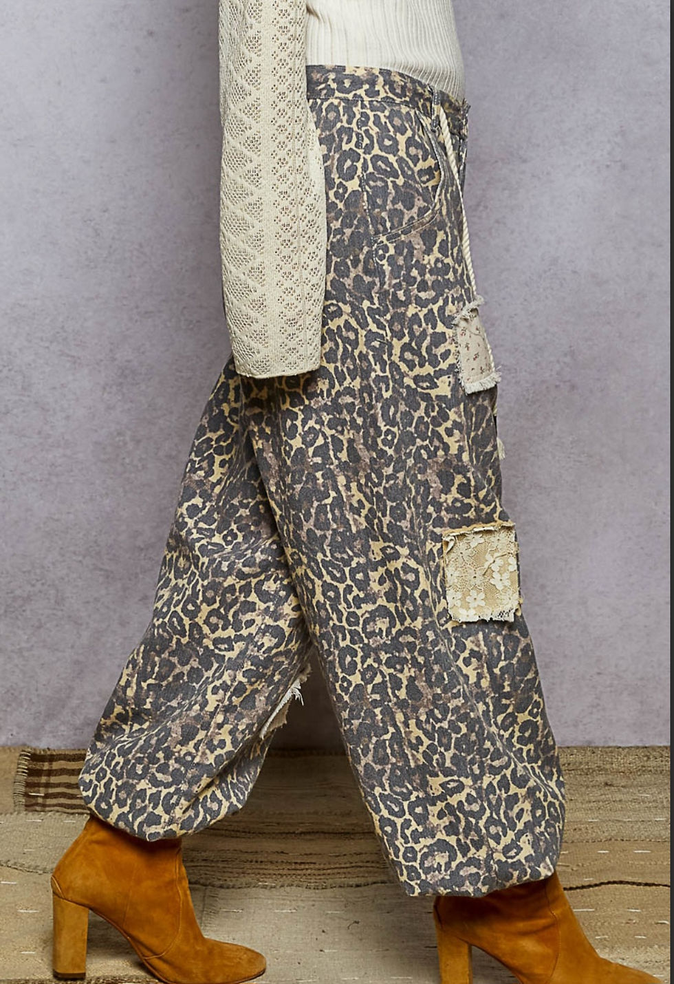 Roomy Fit Pants with Patchwork & Crochet Detail