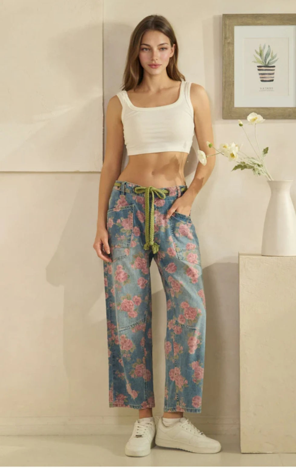 Petal Poetry Drawstring Barrel Jeans