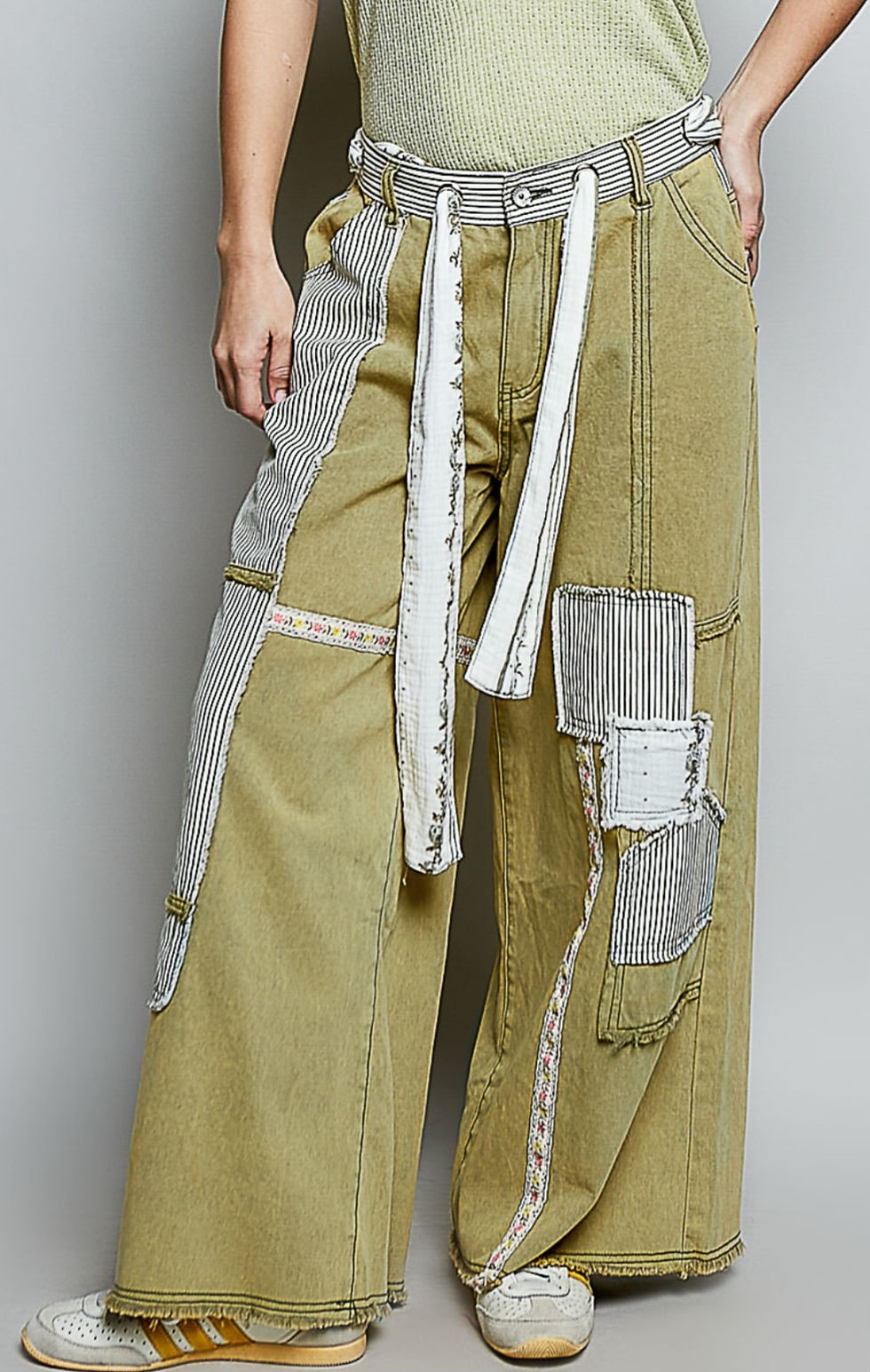 Vintage Ash Lace Pocket Wide-Leg Pants
