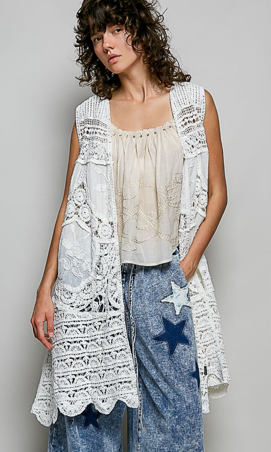The relaxed silhouette and soft stretch make it easy to throw on over your favorite tanks, bralettes, or dresses, while the delicate detailing gives it that handcrafted, vintage-inspired look we love.